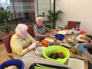 In unseren Wohngemeinschaften steht Pflege nicht im Vordergrund - sondern wird nur soweit geleistet, wie sie erforderlich ist. Grundlage und Ziel dieser Wohnform ist die "Alltagsnormalität" und die Aktivierung der Bewohner innerhalb dieser modernen sozialen Gemeinschaft. Hierzu gehört auch das individuelle Einrichten der Appartements durch den Bewohner. Unterstützt und begleitet wird das Konzept von einem Team aus Hauswirtschaft, Sozialer Betreuung, Pflege und sonstigen Diensten.