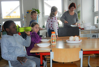 Um 13.00 Uhr ist für alle Kinder Mittagspause. Das warme Mittagessen wird an die dafür gemeldeten Kinder verteilt und mitgebrachtes Essen gewärmt.