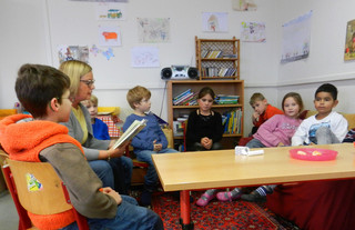 Die Kinder kommen nach der Schule in unseren zwei Spielzimmern an, dürfen Brotzeit machen und sich eine Beschäftigung wählen, entweder in den Spielecken oder am Tisch, basteln, malen oder lesen, je nach Laune und Temperament. Die Spielgruppen sind altersgemischt, so dass die Kinder hier auch ihre Spielkameraden aus der Kindergartenzeit wieder treffen und sich mit den Bedürfnissen der Jüngeren oder Älteren auseinandersetzen und arrangieren müssen. Natürlich darf auch die andere Gruppe besucht werden. Wenn das Wetter halbwegs mitspielt, sind wir vor dem Mittagessen einige Zeit auf dem Hof.