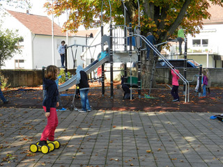 Wir haben drei Spielzimmer, die mit vielen Spielen, Mal- und Bastelmaterialien, Bauecke mit Lego und anderem Konstruktionsmaterial, Verkleidungsecke und Leseecke gut ausgestattet sind. Den schmalen Platz rund um die Mittagsbetreuung nutzen Kleingruppen gerne zum Fangen-spielen. Wir können nachmittags auch die Höfe der Schule nutzen, besonders im Sommer sind wir meistens auf dem Hof der Grundschule mit Klettergerüst und Sandkasten.