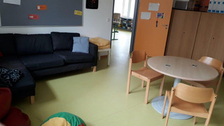Jede unserer Gruppen nutzt einen eigenen Betreuungsraum in der Nähe ihrer Klassenzimmer. Dort melden sich die Kinder nach dem Unterricht bei uns an und können spielen, malen, basteln – oder sich auf dem Sofa entspannen.