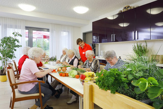 Großzügige und gemütliche Aufenthaltsmöglichkeiten in jedem Wohnbereich laden zum gemütlichen Verweilen ein. Jeder Wohnbereich ist mit einer kleinen Küche ausgestattet, die auch von unseren Bewohner*innen genutzt werden kann. Zwei große Terrassen im Erdgeschoss, ein liebevoll angelegter Garten sowie zwei große Balkone animieren zum Aufenthalt in Luft und Sonne und zum vergnüglichen Beisammensein.