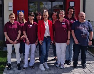 Hauswirtschaftskraft Lea T., Pflegefachkraft Vanessa W., Pflegefachkraft Karin Z.-E., Fahrerin Manuela H.-T., Pflegedienstleitung Lejla Gallagher, Betreuungsassistentin Ulrike M., Pflegefachkraft Cornelia S., Bertreuungsassistentin Nadja D. Fahrer Waldemar P. und (leider nicht auf dem Bild) Frank F.