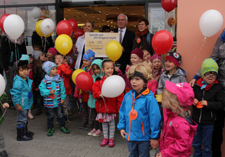 Eine Wette verloren, dafür aber zum ersten Geburtstag ein Geburtstagsständchen aus über 130 Kehlen bekommen, hat der DM-Markt in Höchberg. DM-Filialeiterin Theresa Hemberger hatte mit der Arbeiterwohlfahrt (AWO) Unterfranken gewettet - und verloren. „Wetten, dass Sie es nicht schaffen am Donnerstag um 11 Uhr 130 Menschen zu finden, die uns ein Geburtstagsständchen singen!“- So hatte sie Frank Alibegovic, den AWO-Referenten für Fachberatung im Bereich Kinder, Jugend und Familie herausgefordert. 1000 Euro hatte Hemberger dagegen gesetzt. Aber, unterstützt von Bürgermeister Peter Stichler, ließ die AWO sich nicht lumpen. Die Kinder aus dem AWO Kindergarten am Wiesengrund bekamen Verstärkung von weiteren Sängerinnen und Sängern. Gemeinsam sicherte sich der Generationen-übergreifende AWO Projektchor so die 1000 Euro für die neue Krippengruppe am Wiesengrund. Für das Geld, verrieten die Erziehrinnen, wollen sie zusätzliches Spielmaterial anschaffen. Getreu dem Text des Geburtstags-Chores strahlte die Filialleiterin trotz der Wettniederlage „wie der Sonnenschein.“ „Als Höchberger freuen wir uns, dass die Krippe jetzt das Geld bekommt, der Gewinn also im Ort bleibt“, gestand sie.
