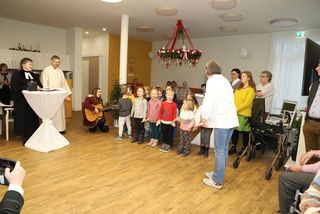 Nach den Ansprachen und dem kirchlichen Segen durch Pfarrerin Claudia Winterstein und Pastoralreferent Norbert Zettelmeier, sangen die Kinder aus der Caritas-Kindertagesstätte St. Michael für die Anwesenden. Danach genossen alle sichtlich das gesellige Beisammensein und den Austausch bei leckerem Essen.