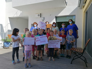 Nachdem die Sicherheitsmaßnahmen nun nach und nach jedoch wieder gelockert wurden und sowohl das Kinderhaus als auch die Tagespflege wieder öffnen konnten, war es nur noch eine Frage der Zeit, bis auch ein Besuch der Kinder wieder stattfinden konnte. Letzte Woche, noch rechtzeitig vor den Ferien, war es so weit – mit genügend Sicherheitsabstand zu den Senioren – konnten die Kleinen und Vorschulkinder die Tagespflege endlich wieder besuchen.