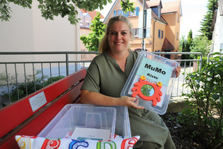 Doch auch Krätzer fehlt es nicht an Ideen. So wurde die rote Bank, die 2019 vom AWO Ortsverein Waldbüttelbrunn zum 25-jährigen Bestehen der Kita an das Spatzennest gespendet wurde, kurzerhand zur offiziellen Sprach-Kita Bank ernannt. Hier wird nun eine Box bereitstehen, in der sich verschiedene Übungen und Spiele rund um das Thema „Sprache“ geben wird, die Eltern mit ihren Kindern auch Zuhause umsetzen können. Die erste Box ist eine Mundmotorik-Kiste mit vielen Anregungen, wie Kinder spielerisch ihre Mundmotorik trainieren können.