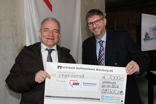 Für die optimale Ausstattung des Cafés überreichte der Geschäftsführer des VR-ImmoService Mainfranken Eike Wohlhüter unserem Geschäftsführer Martin Ulses einen großzügigen Scheck über 1000 Euro!